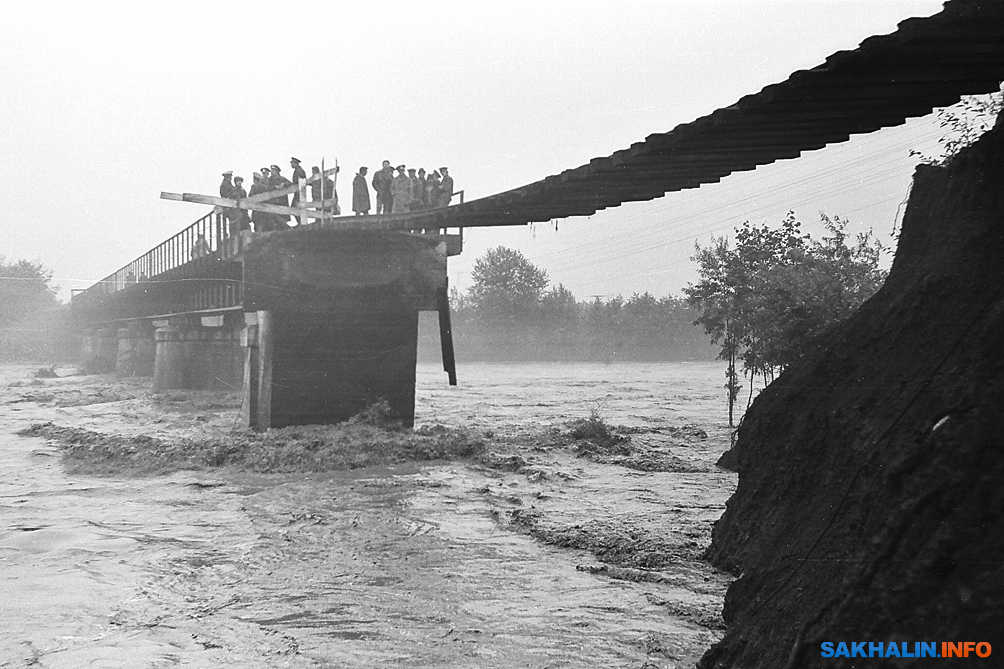 В эти дни была страшная жара, а потом пошел дождь. В том районе в сопках круглый год в распадках лежит снег. Теплая погода и непрекращающийся дождь сделали свое дело. Снег таял и впадал в реку, вода подмывала деревья, кустарники, и получилась природная плотина, которая перекрыла реку, и начала скапливаться вода. Как-только она набрала силу, получилось речное цунами. Вода с деревьями, камнями понеслась вниз на поселок, смывала дома, уносила людей. В Смирных через эту реку стоял мост на японских сваях. Их смыло, как спичечные коробки!