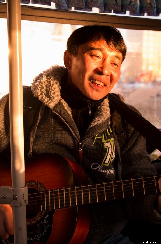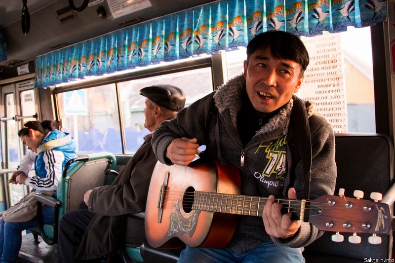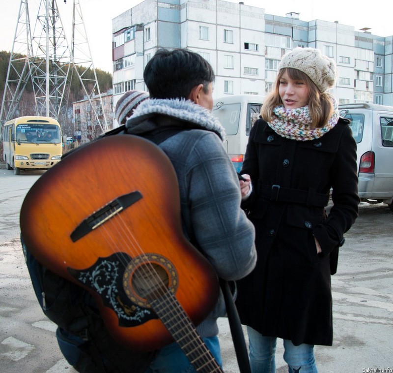 — Периодически работаю, объездил практически весь Сахалин в поисках работы. А так я приехал сюда работать учителем истории. Пока не берут, но скоро обещали взять, так что устроюсь. У меня шесть лет педагогического стажа. На гитаре играю иногда, подрабатываю и для творческого вдохновения.